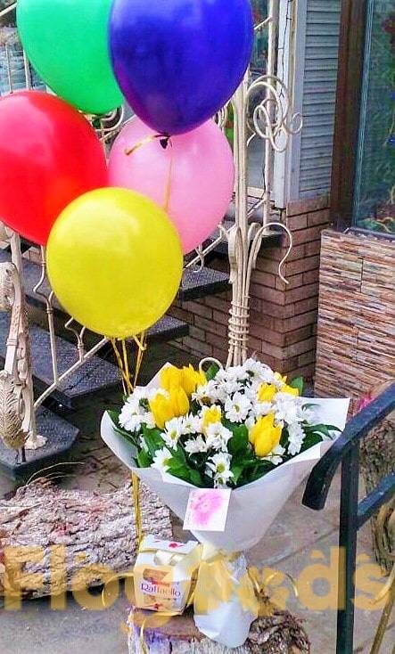 Для небанальных подарков отличным вариантом станет букет из ромашковых хризантем и желтых тюльпанов, дополненный коробкой конфет. Весенний презент, который пахнет свежестью и дарит прекрасное настроение, актуален для мам, бабушек, сестер.